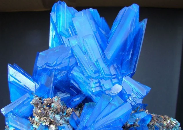 - Chalcanthit - este un mineral rar din clasa sulfaţilor, cu o culoare albastră deosebită, ce apare în ultimele faze de oxidare a depozitelor de Cupru. Având în compoziție Cupru, Sulf, Hidrogen și Oxigen este un mineral extrem de solubil în apă fapt care duce la apariția lui aproape exclusiv în zonele aride. Cuprul este unul dintre elementele prezente în organismul uman însă în cantități mari acesta devine toxic și poate induce moartea. Datorită faptului că este solubil în apă, pentru a evita o eventuală supradoză extrem de periculoasă care ar putea afecta grav sănătatea "cercetătorului", Chalcanthitul NU TREBUIE GUSTAT. Manipularea unor astfel de cristale trebuie făcută cu mare precauție. Numai câteva cristale pot ucide iazuri întregi de alge şi pot provoca ameninţări grave de mediu.