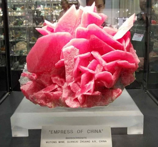 - Empress of China - Unul dintre cele mai mari specimene de Rodocrosit extras vreodată, de o calitate remarcabilă, a fost expus în vara anului 2011 în Muzeul de Geologie Colorado School of Mines. În valoare de 1,6 milioane dolari, specimenul a fost descoperit în primăvara anului 2010 în China, mina Wutong din provincia Guangxi, fapt care a dus si la denumirea dată acestui cristal (Empress of China - Împărăteasa Chinei). În partea cea mai mare dimensiunea cristalului atinge aproximativ 38 cm iar petalele au dimensiuni de până la 19 cm.
