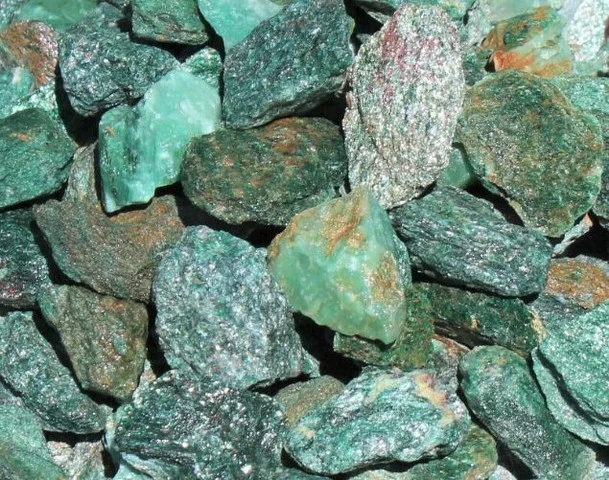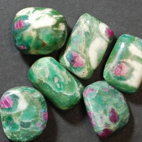 Varietați: Rubin Fuchsit (culoare verde intens cu straturi fine din alte nuanțe și puncte albe, negre sau vișinii), Verdit.