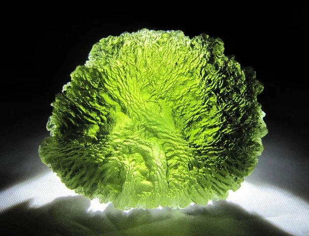 Descriere: este o sticlă naturală, la fel ca obsidianul, deosebit de rară și specială datorită originii sale extraterestre. Este o tectită de culoare verde-măsliniu, de natură meteoritică. S-a format în urmă cu 15 milioane de ani la impactul meteoriților cu Pământul.