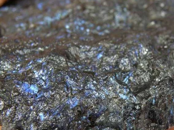 Culori: gri închis, negru-maroniu, negru cu iridiscență de culoare albastră, aurie sau roșiatică.