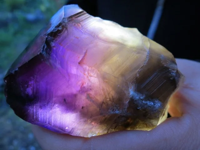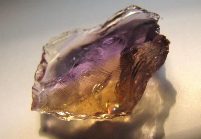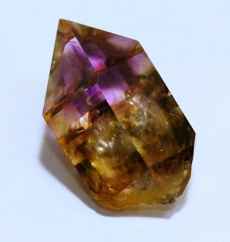 Descriere: varietate de Cuarț, o parte Amethyst (violet) și o parte Citrin (galben).