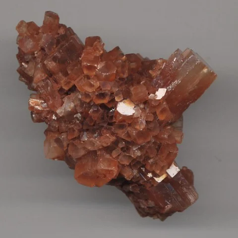 Descriere: mineral din familia carbonaților, este unul dintre cele două forme cristaline comune ale Carbonatului de Calciu. Sistemul de cristal ortorombic și cristalele aciculare fac ca Aragonitul să arate total diferit față de Calcit. Poate apărea în formațiuni columnare sau fibroase, ocazional în forme stalactitice ramificate denumite "Flori de Fier" (Flos-Ferri).
