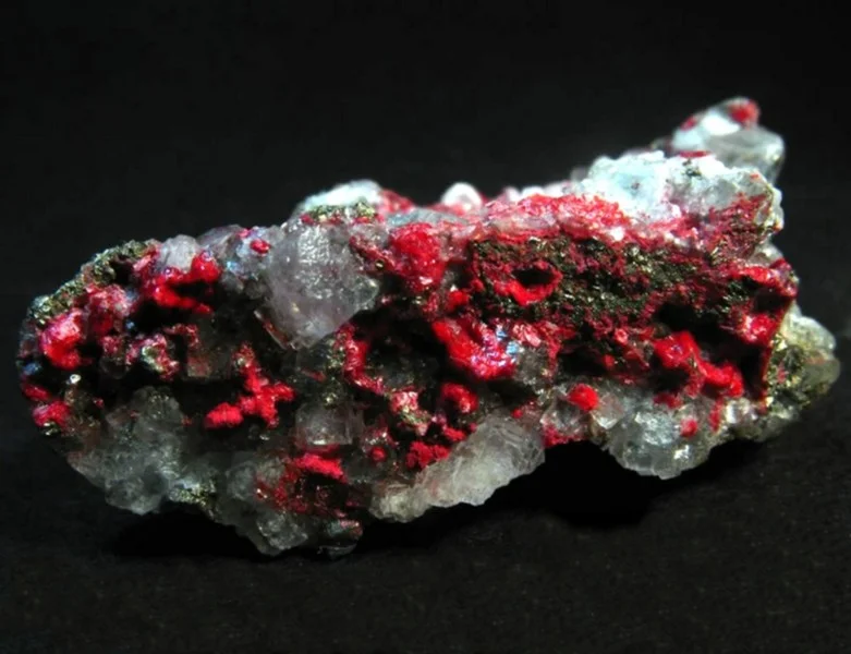 Descriere: Este o sursă primară de Mercur și poate fi întâlnit cel mai adesea sub formă de structuri masive sau granulare în zonele cu activitate vulcanică recentă și izvoare termale alcaline. Cinabrul se aseamănă cu Cuarțul în ce privește simetria cristalului și a caracteristicilor sale optice, având o putere de refracție mai mare decât a altor cristale. Apare în asociere cu Mercur Nativ, Stibnit, Realgar, Pirită, Marcasite, Calcit, Opal, Dolomită, Barită, Calcedonie, Cuarț.