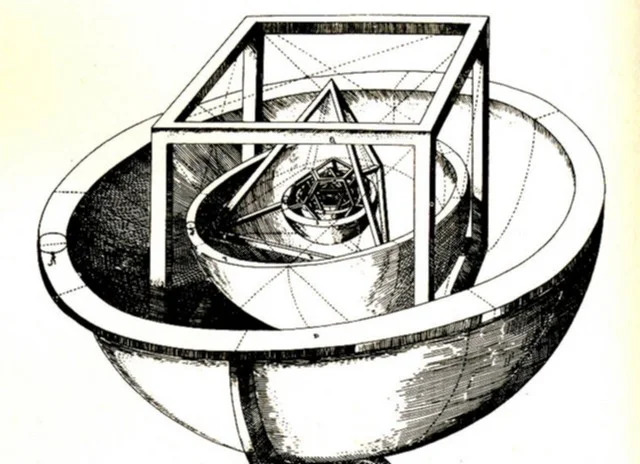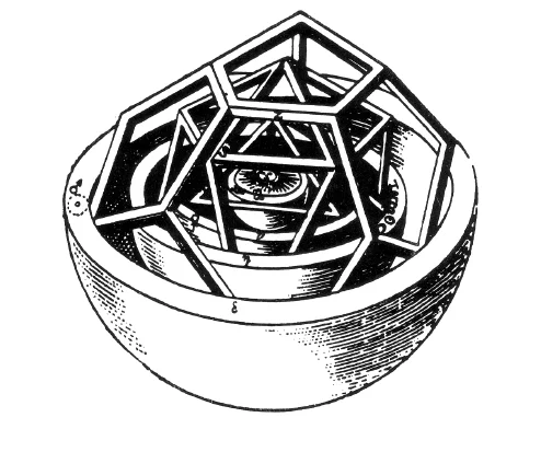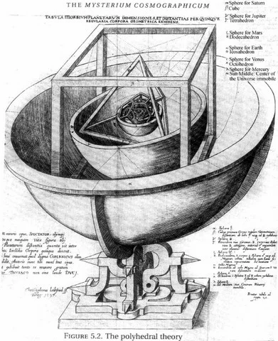 În lucrarea sa "Misterium cosmographicum de admirabili proportione orbiun coelestium" (Misterul cosmografic despre uluitoarea proporție a orbitelor cerești) apărută la Tübingen în anul 1596, celebrul astronom și matematician german Johann Kepler (1571-1630) comunica o descoperire senzațională. Începând prin a considera o sferă de rază egală cu raza orbitei lui Saturn (planeta cea mai depărtată de Soare din câte se cunoștea la vremea aceea) Kepler a inscris în aceasta un cub. În cub a înscris o altă sferă și a constatat cu uimire că această a doua sferă corespunde, ca rază, orbitei lui Jupiter (la acea vreme se credea că orbitele planetelor sunt circulare). Procedând mai departe în același mod Kepler constată că între sferele corespunzătoare orbitelor celor 6 planete cunoscute până atunci (Mercur, Venus, Terra, Marte, Jupiter, Saturn) se înscriu cele cinci poliedre regulate posibile în următoarea ordine: icosaedru, octaedru, dodecaedru, tetraedru, cub.