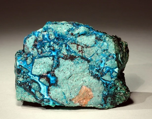 Descriere: mineral din grupa silicaților (cu inserții de cupru). Este o varietate de cuarț (calcedonie) cu nuanțe intense de culoare verde-albastră.