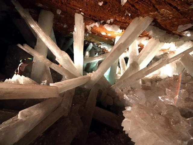 - Cele mai mari cristale de pe Pământ se găsesc în Giant Crystal Cave (Caverna Giganților de Cristal) din Mexic. Se află la aproximativ 300 de metri sub deșertul Chiuhuahua, într-o peșteră care conține 170 de cristale uriașe de gips, unele dintre acestea având 12 m lungime şi peste 2 m în diametru. Un astfel de cristal poate cântări până la 55 de tone.