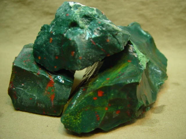 Descriere: este o varietate de cuarț de culoare verde închis cu incluziuni de oxid de fier (puncte roșii sau grena), motiv pentru care mai este denumit și Piatra Sângelui (Bloodstone), Piatra Războinicilor sau Piatra Martirului.