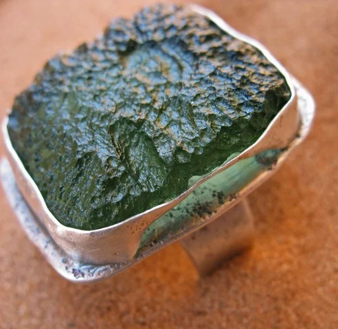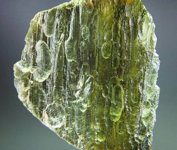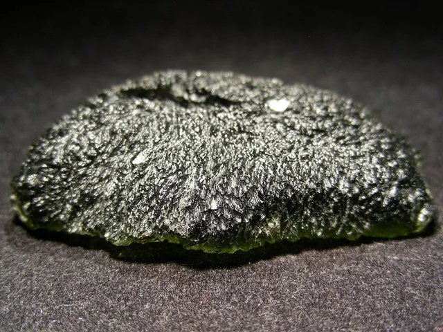 Descriere: este o sticlă naturală, la fel ca obsidianul, deosebit de rară și specială datorită originii sale extraterestre. Este o tectită de culoare verde-măsliniu, de natură meteoritică. S-a format în urmă cu 15 milioane de ani la impactul meteoriților cu Pământul.