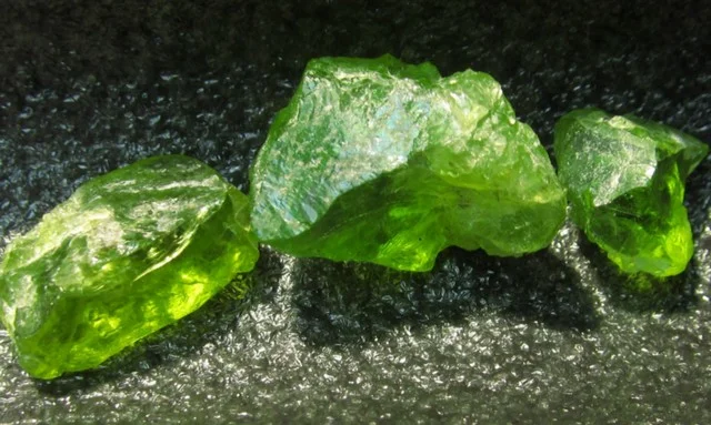 Notă: cristale de Peridot au fost descoperite și în anumite tipuri de meteoriți (Pallasit), reprezentând astfel, alături de Moldavit, unele dintre puținele cristale extraterestre care există pe Pământ.