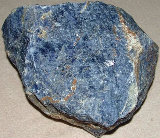 Descriere: este o piatră semiprețioasă de culoare albastru intens spre indigo cu vinisoare albe, gri sau bleu.